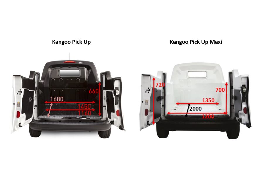 Nouveauté! Désormais disponible sur version L2, Kangoo Pick Up Maxi vous offre encore plus d’espace de chargement.